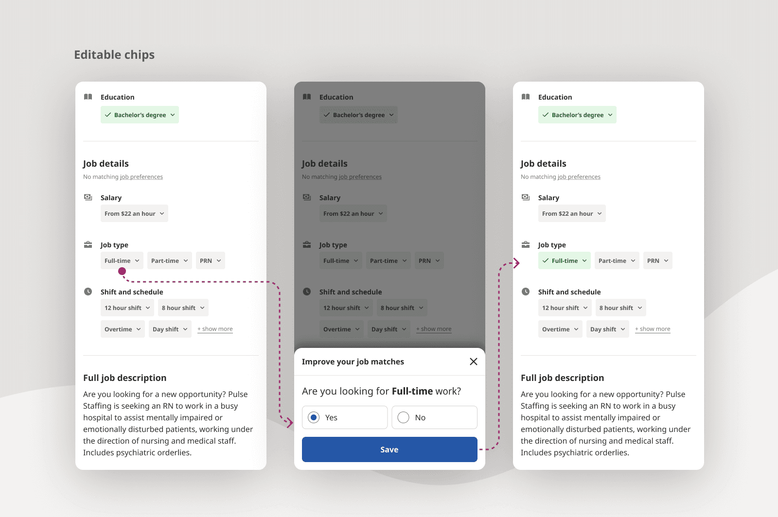 I pitched and brought together multiple different teams across product, design, and content to align upon the data collection and management strategy. Additionally, I had to make a case for creating a new data storage layer for structured data management within an outdated system historically reliant on the format of a traditional 1-2 page resume.